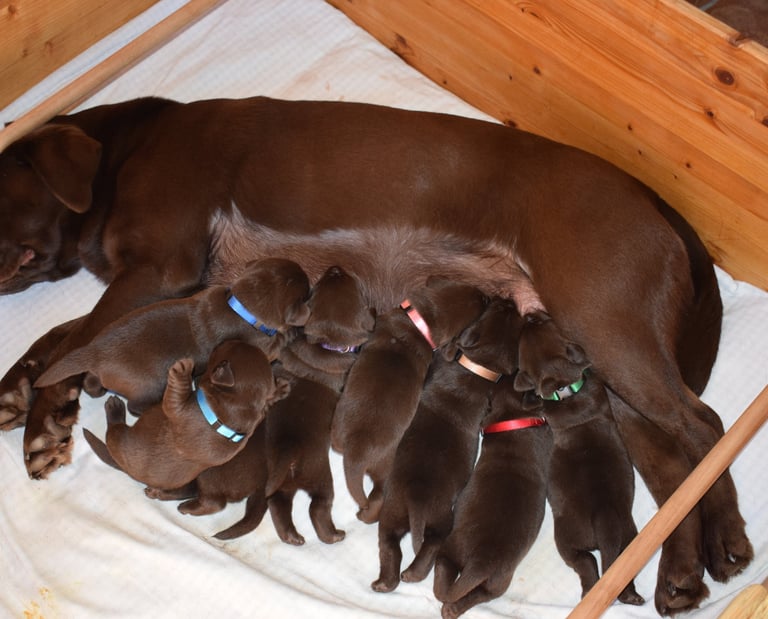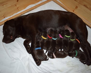 Wir legen großen Wert auf eine sorgfältige Auswahl der Elterntiere. Gesundheitliche Aspekte wie die Überprüfung auf Erbkrankheiten, ein freundliches und stabiles Temperament sowie Leistungsbereitschaft stehen dabei im Vordergrund. Unsere Welpen sollen sowohl im Alltag als auch in verschiedenen Arbeitsbereichen – wie Dummyarbeit, Jagd oder als Therapie- und Begleithunde – überzeugen können.